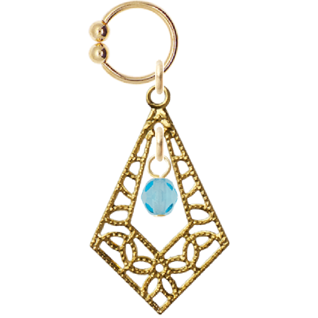 海のきらめきを閉じ込めたようなアクアマリンをあしらったイヤーカフ。透かし模様のゴールドフレームが繊細に光を反射し、耳元を華やかに彩ります。宝石言葉は『幸福』『永遠の愛』。