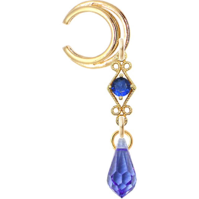 澄んだブルーのストーンと、繊細に揺れる雫型チャームをあしらったイヤーカフ。透明感のある輝きは、水滴が光を受けてきらめく瞬間を思わせます。耳に軽やかに添うデザインで、シンプルな装いにも華やかさをプラス。