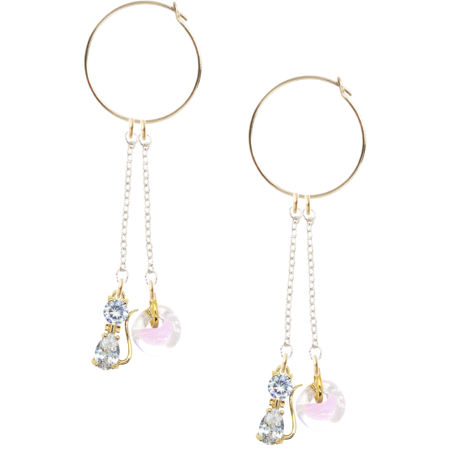 このピアスは「洗練」と「可愛らしさ」をテーマにしており、ガラスビーズの透明感と猫のCZチャームがあなたの魅力を引き立てます。ユニークなデザインが、日常使いから特別なシーンまで幅広くあなたを彩り、自信を持たせてくれることでしょう。